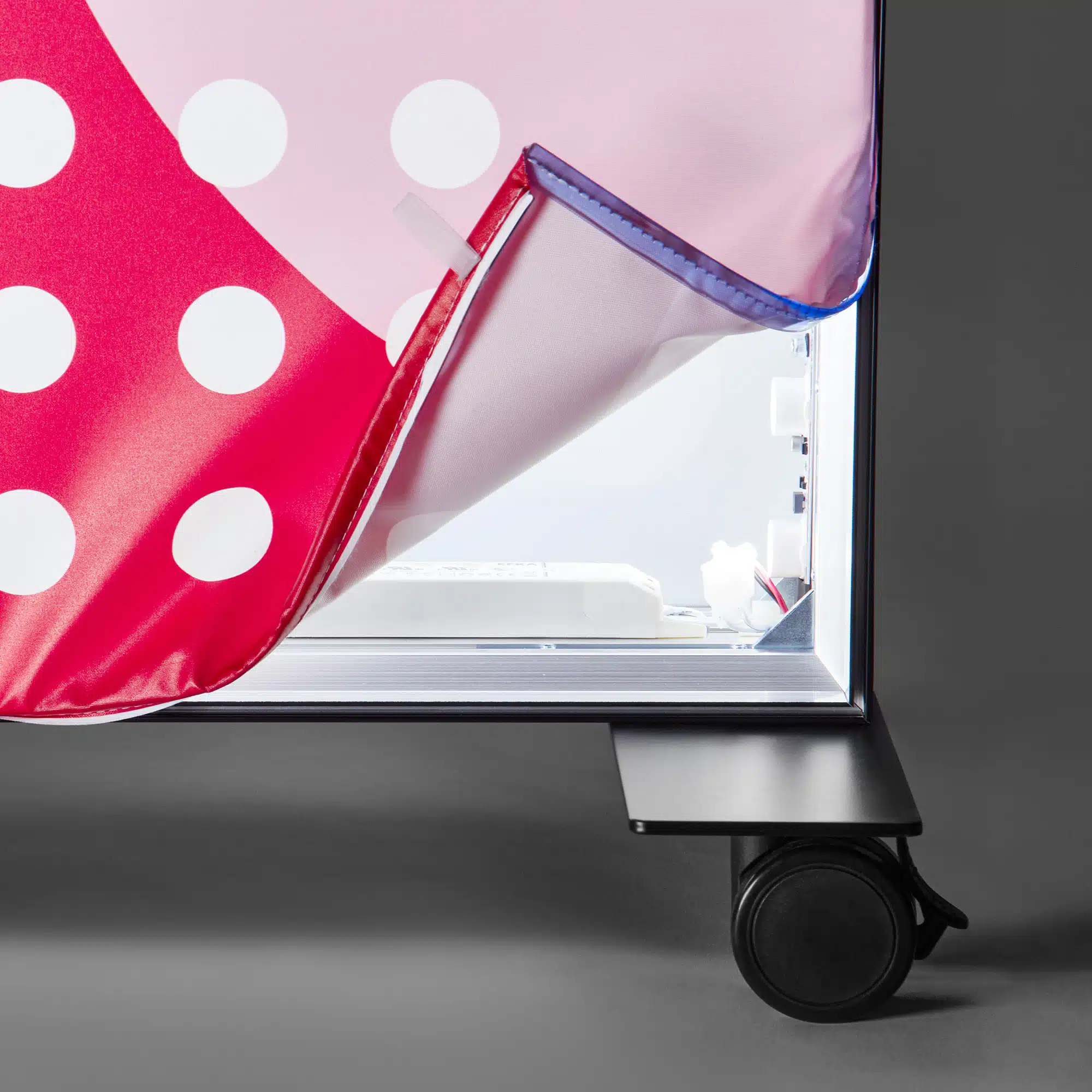 Attirez tous les regards avec nos cadres LED autoportants personnalisés, parfaits pour les salons, vitrines, halls d’accueil, expositions ou points de vente. Grâce à leur éclairage LED intégré et leur toile textile tendue, vos visuels prennent vie avec une luminosité uniforme et professionnelle.