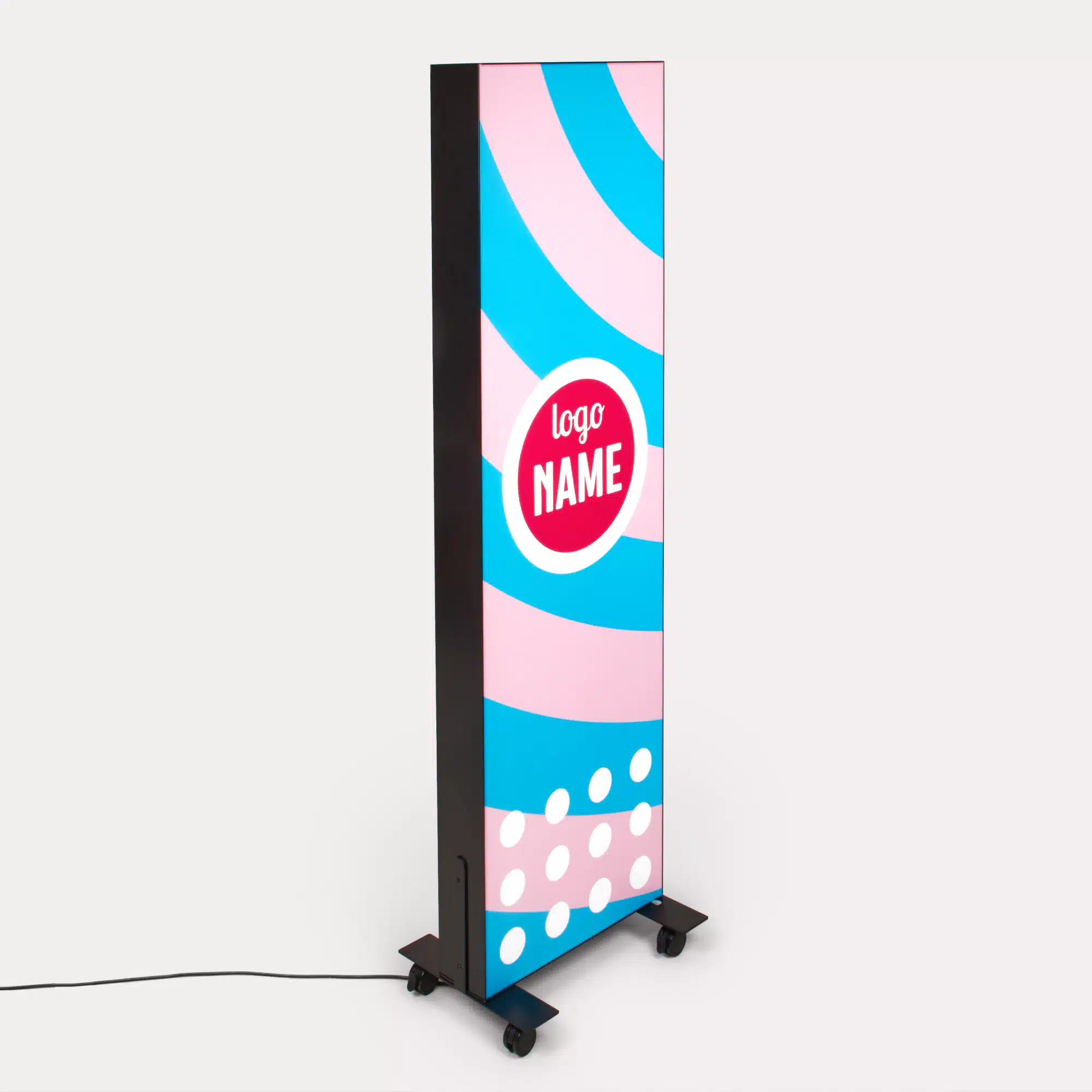 Commandez votre cadre LED autoportant personnalisé pour une communication haut de gamme, lumineuse et parfaitement visible, même en environnement peu éclairé.